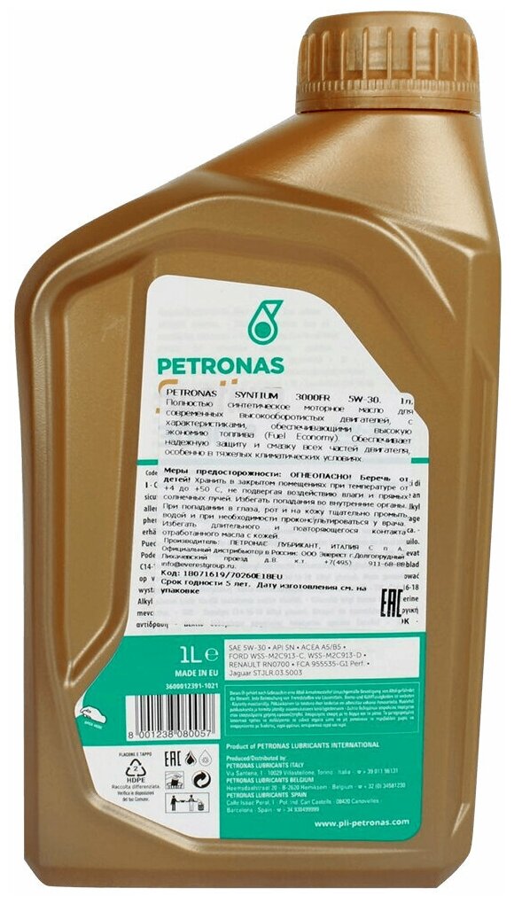 70260E18EU-18071619 Моторное масло PETRONAS SYNTIUM 3000 FR синт. 5W- 30, 1л
