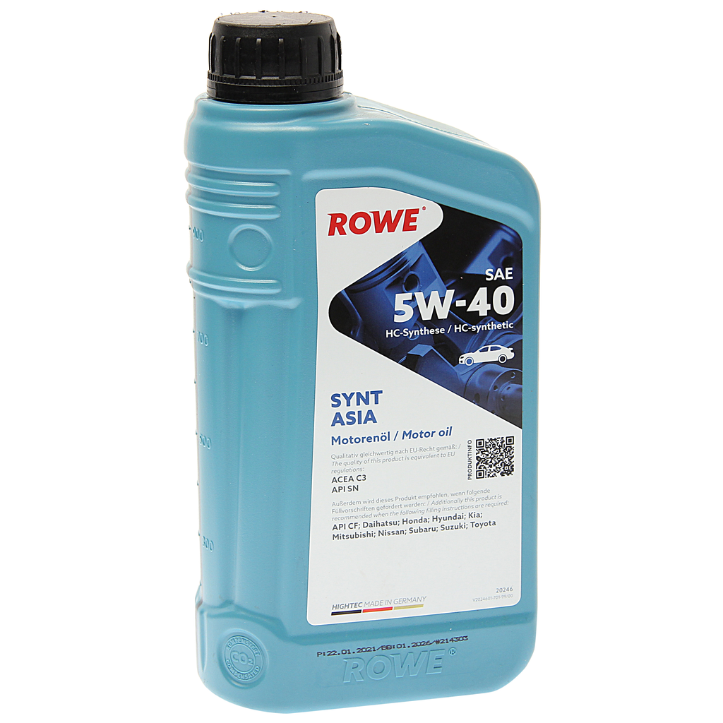 ROWE 20246001099 Масло моторное ROWE HIGHTEC SYNT ASIA SAE 5W-40 (1л) С3 SN/CF Daihatsu, Honda, Hyundai, Kia, Mitsubishi, Nissan, Subaru, Suzuki, Toyota