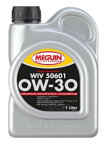 Meguin 6323 Meguin Синт. Мот.Масло Megol Motorenoel Wiv 50601 0w-30 A5/B5 (1л) Meguin^6323