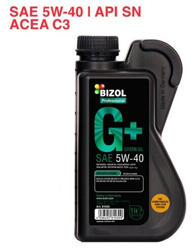 BIZOL 81030 Масло моторное Green Oil+ 5W-40 SN C3 (1л)