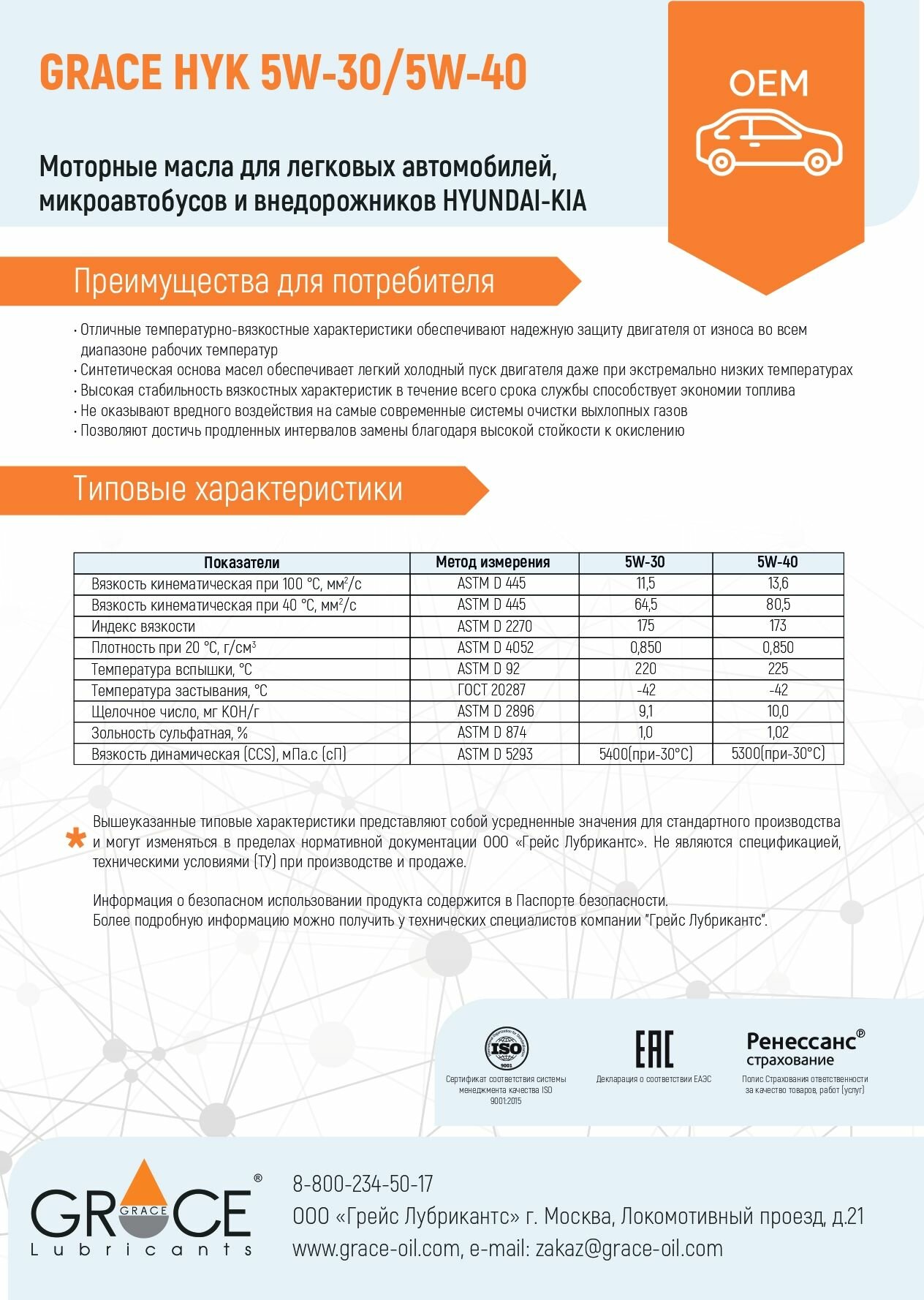 Моторное масло GRACE HYK 5W-30, 5л интересное: