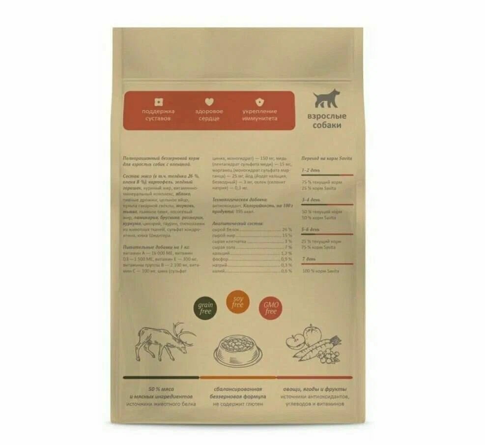 Купить SAVITA беззерновой корм для взрослых собак с олениной (10 кг)
