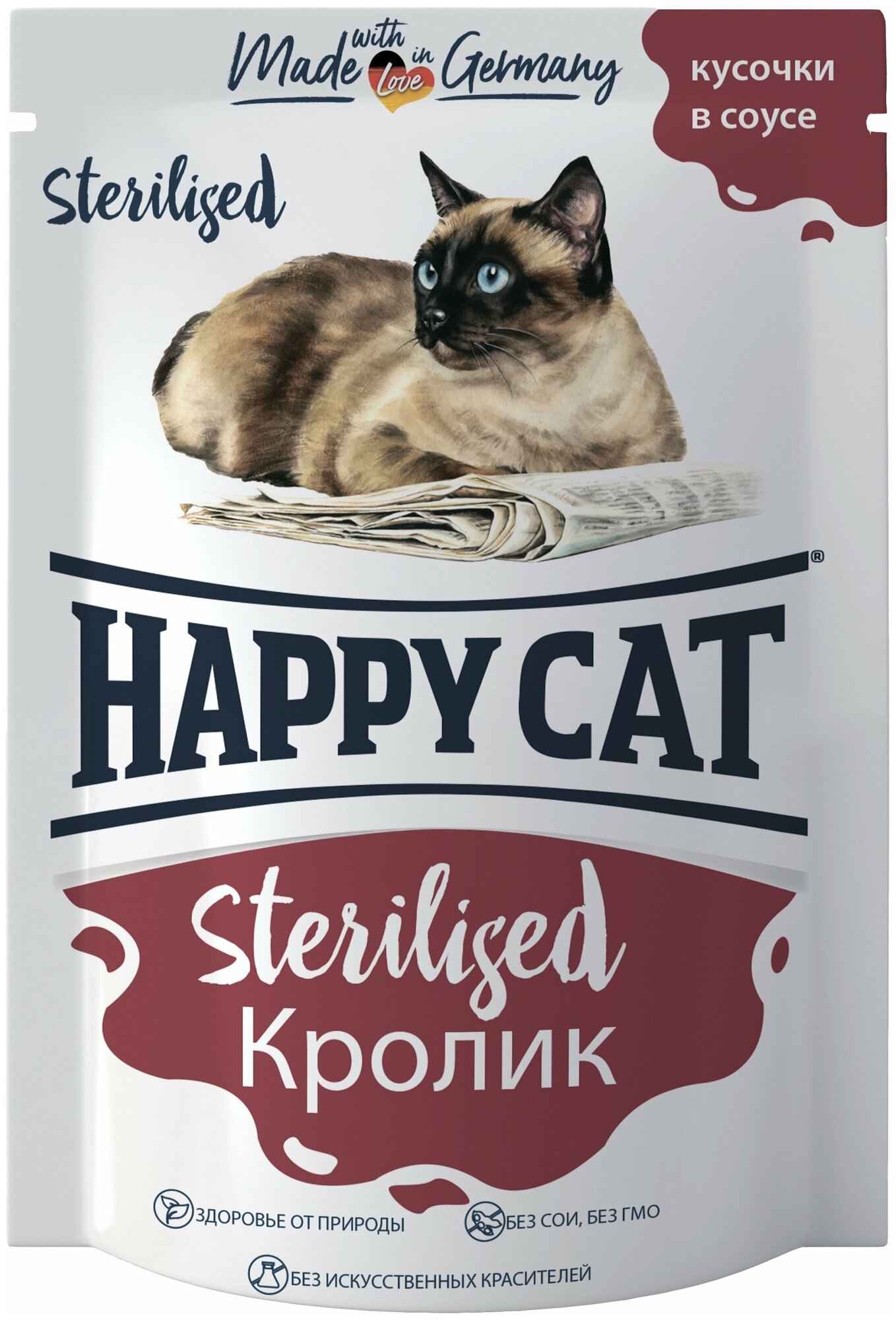 Happy Cat влажный корм для стерилизованных кошек с кроликом в соусе, в паучах - 100 г