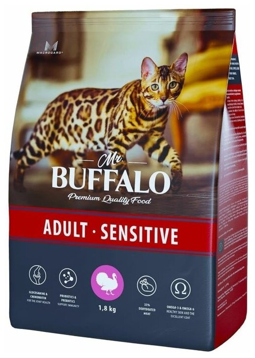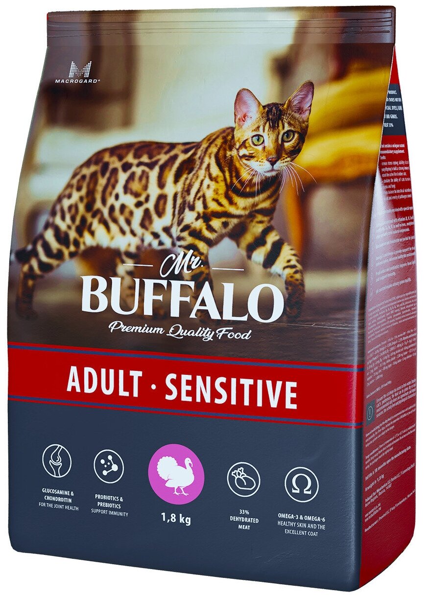 Корм Mr. Buffalo Adult Sensitive для кошек с чувствительным пищеварением, с индейкой, 1.8 кг