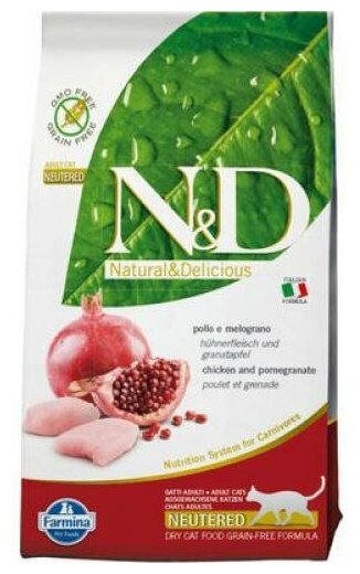 Корм сухой Farmina N&D Prime Neutered, для стерилизованных кошек и кастрированных котов, с курицей и гранатом, 1,5 кг