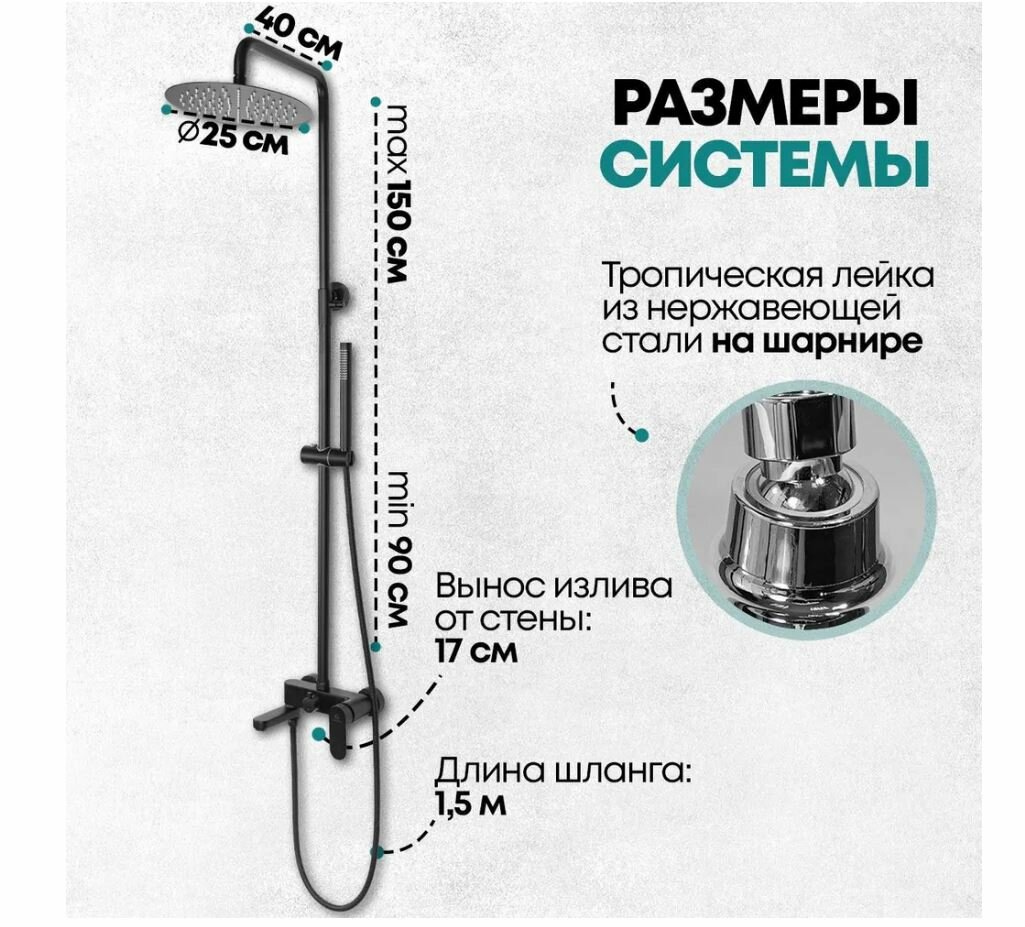 | Режимы | тропический дождь / смешанная струя / мягкая струя / массажная струя |