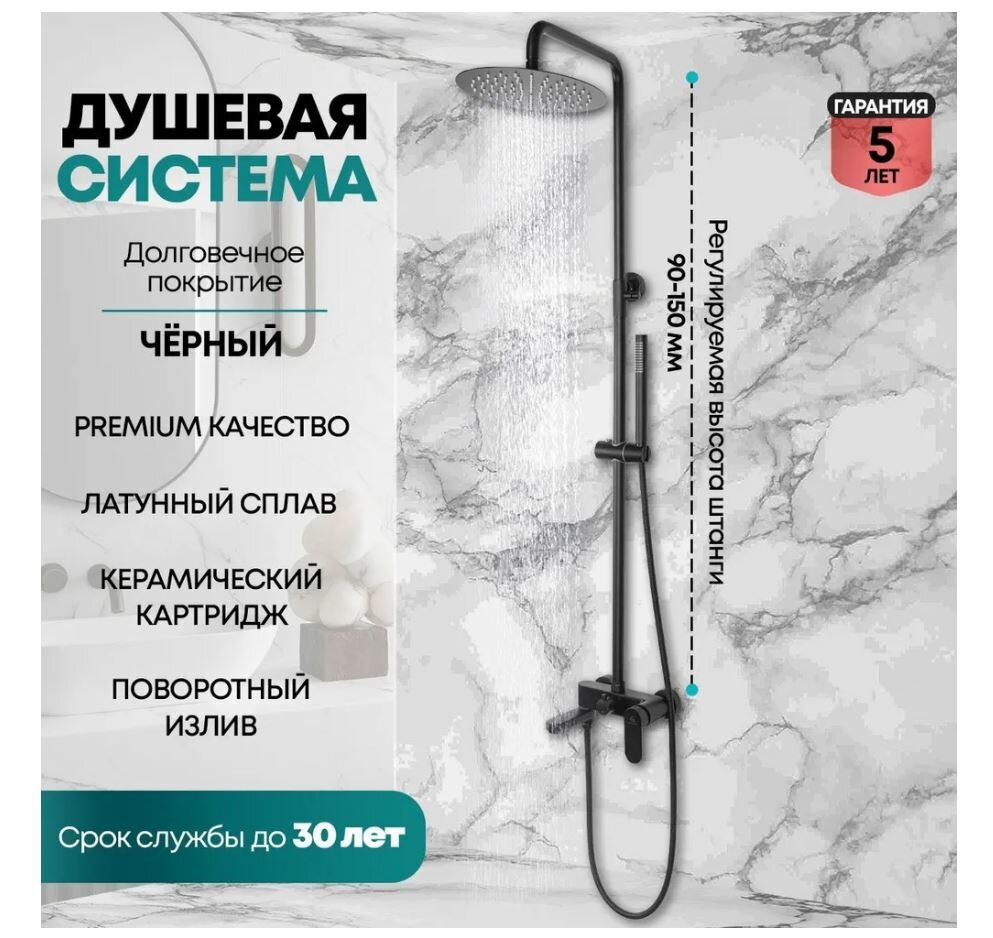 Купить Смеситель для ванны душа душевая система тропический душ черный Grocenberg GB7011BL