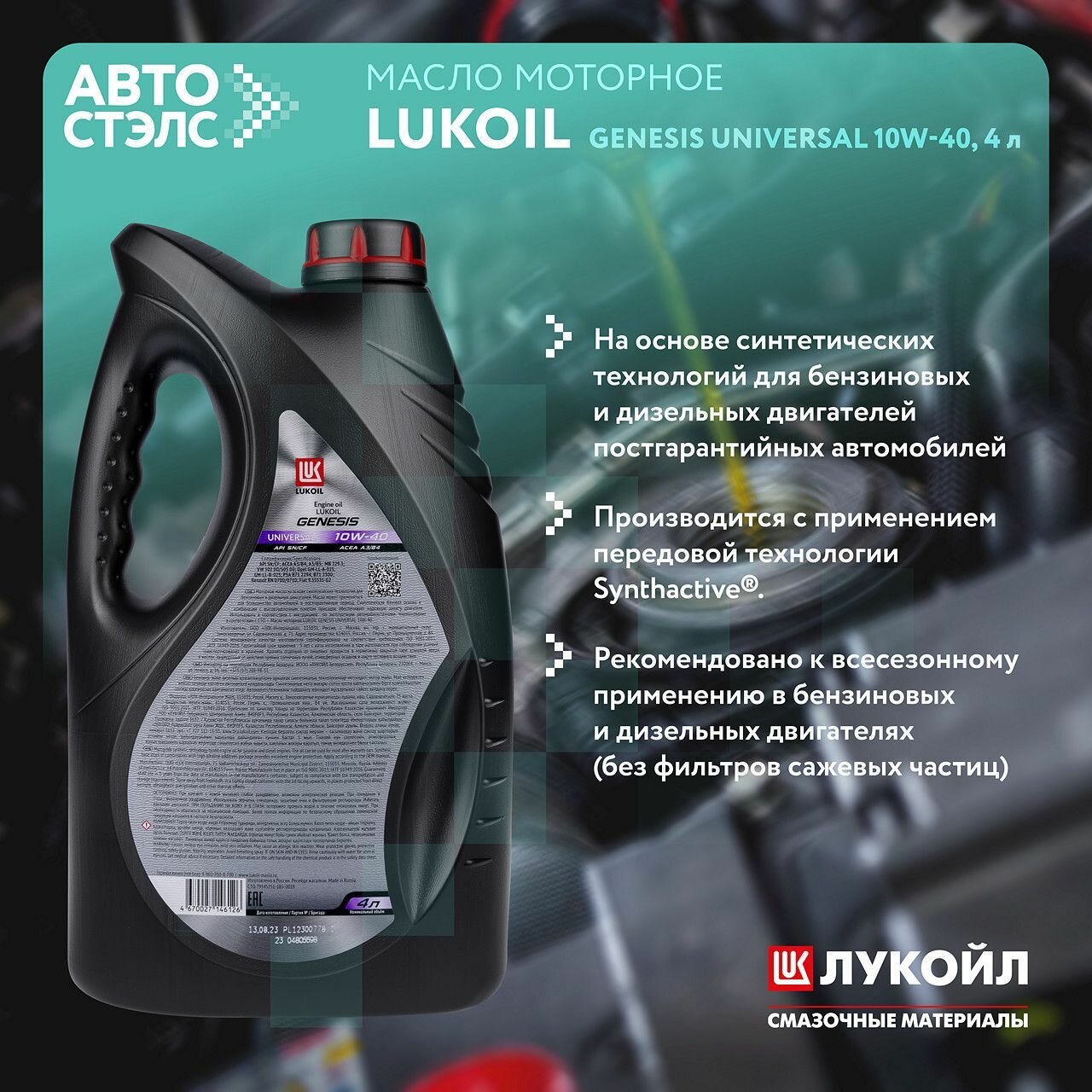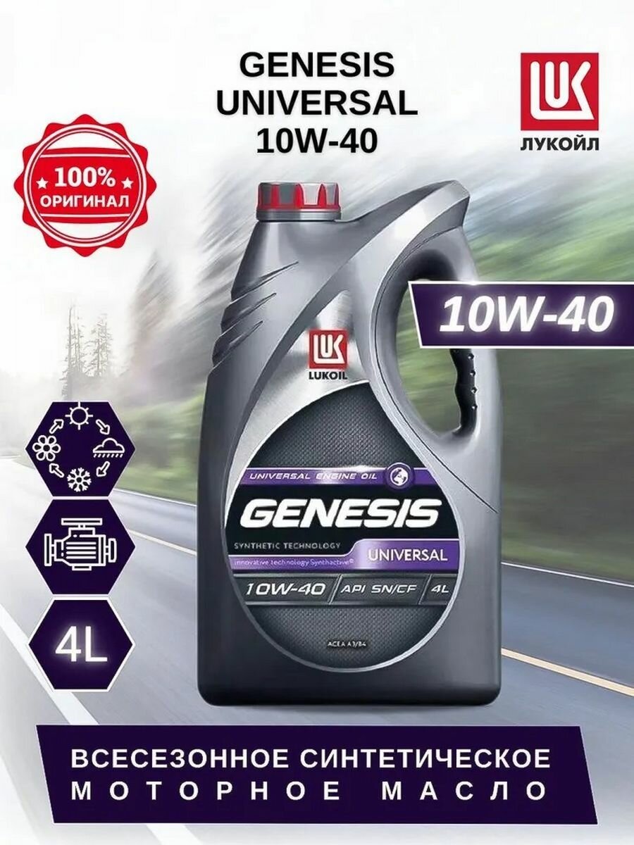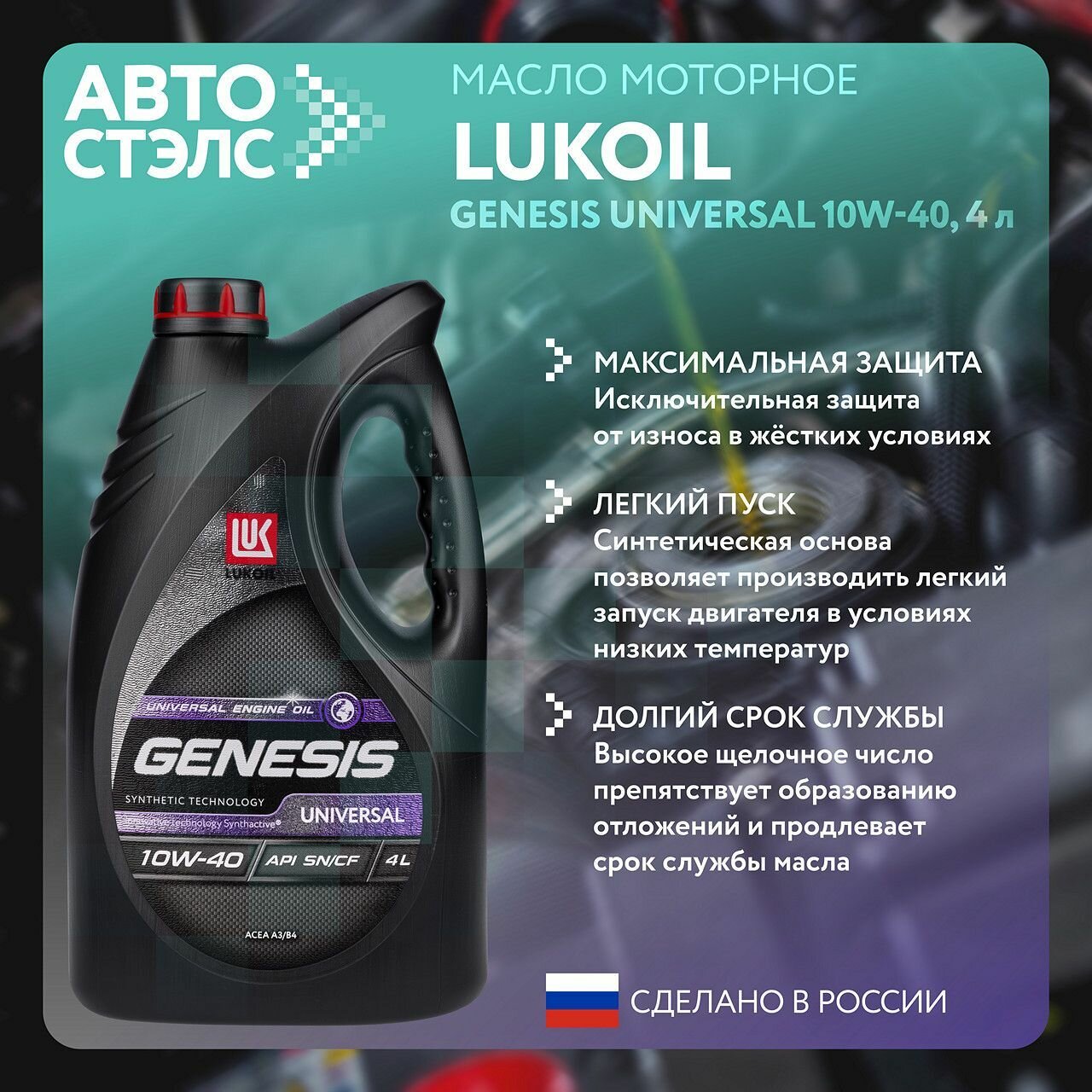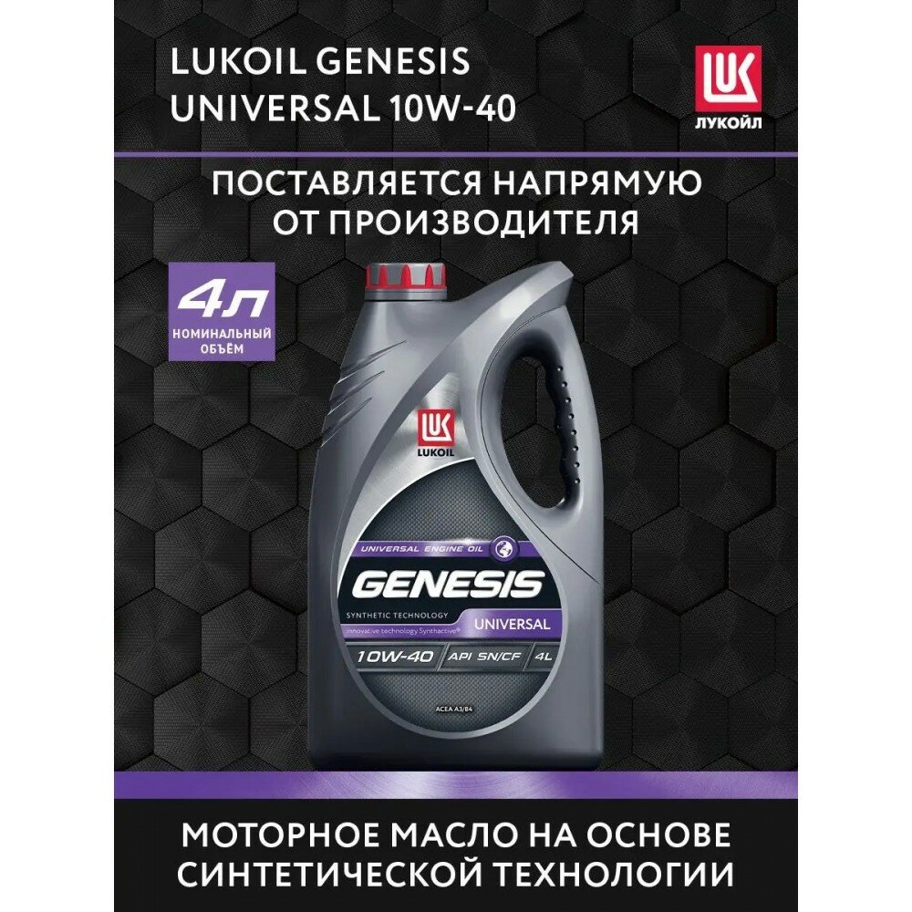 Масло моторное Лукойл Genesis Universal 10w40 синтетическое, API SN/CF, ACEA A3/B3/B4, универсальное, 4л, арт. 3148646