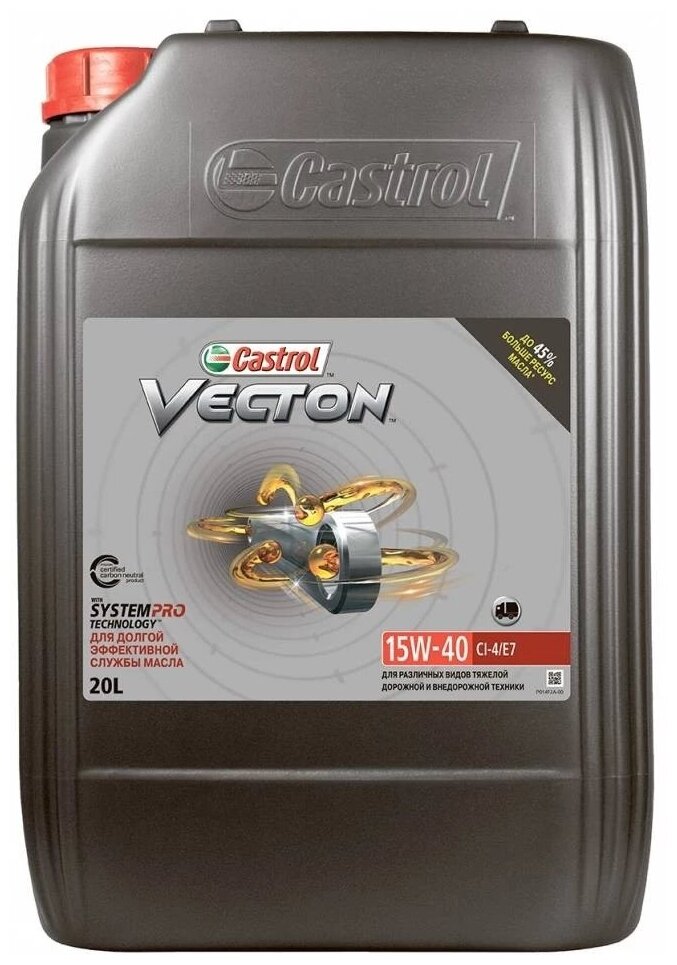 Castrol Castrol^15b9c6 Масло Vecton 15w-40 Ci-4/E7 20л Ci-4/Sl E7 Cat Ecf-2 Cummins Ces 20077 Ces 20078 Ddc Powerguard 93k2