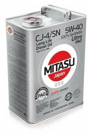 Масло моторное 5w40 син. MITASU ULTRA DIESEL 4л (API CI-4/CH-4/СG-4/CF; ACEA А3/B3/B4/E3/)