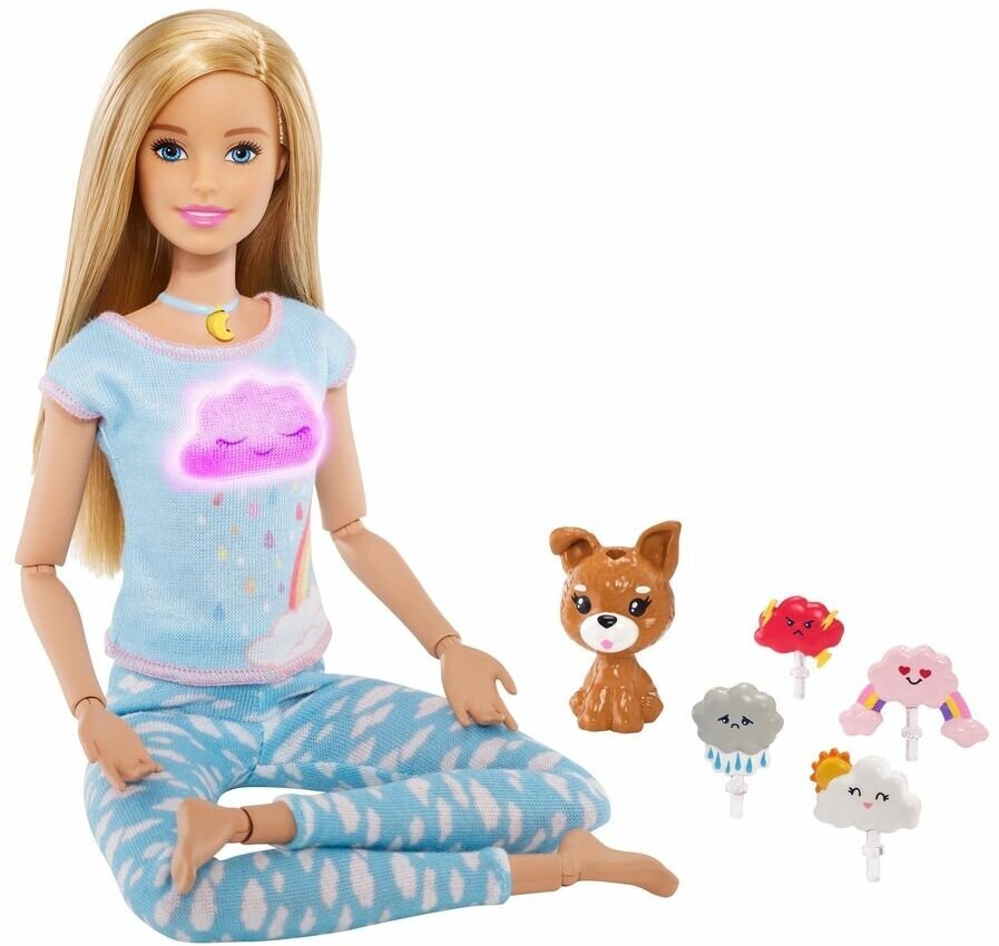Barbie. Игровой набор Breathe with me "Йога: кукла, питомец и аксессуары" со световыми и звуковыми эффектами / GNK01