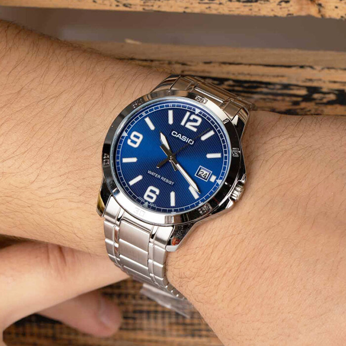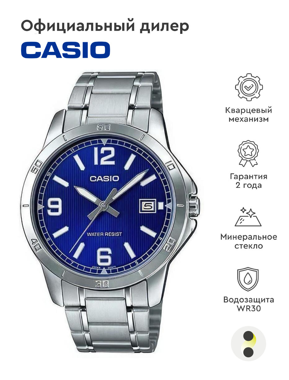 Наручные часы CASIO MTP-V004D-2B, серебряный, синий