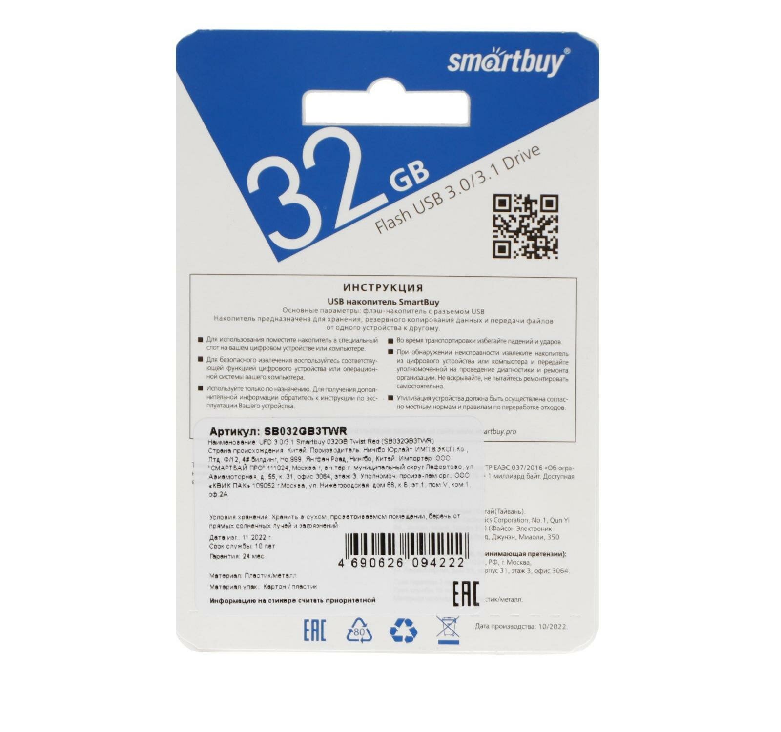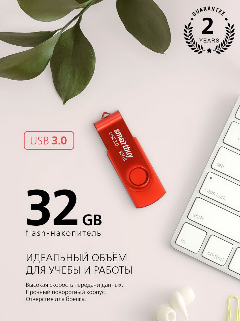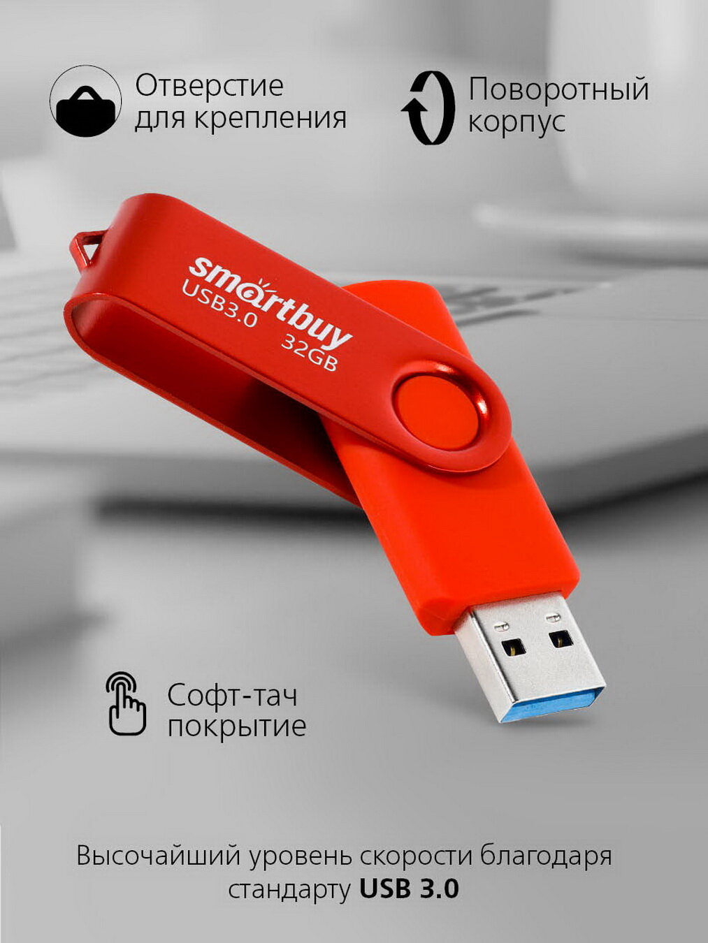 USB флешка Smartbuy 32Gb Twist red USB 3.0 интересное: