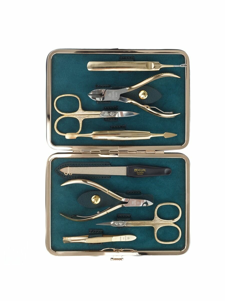 Маникюрный набор DEWAL, 8пр. Футляр: натуральная кожа, цвет зеленый