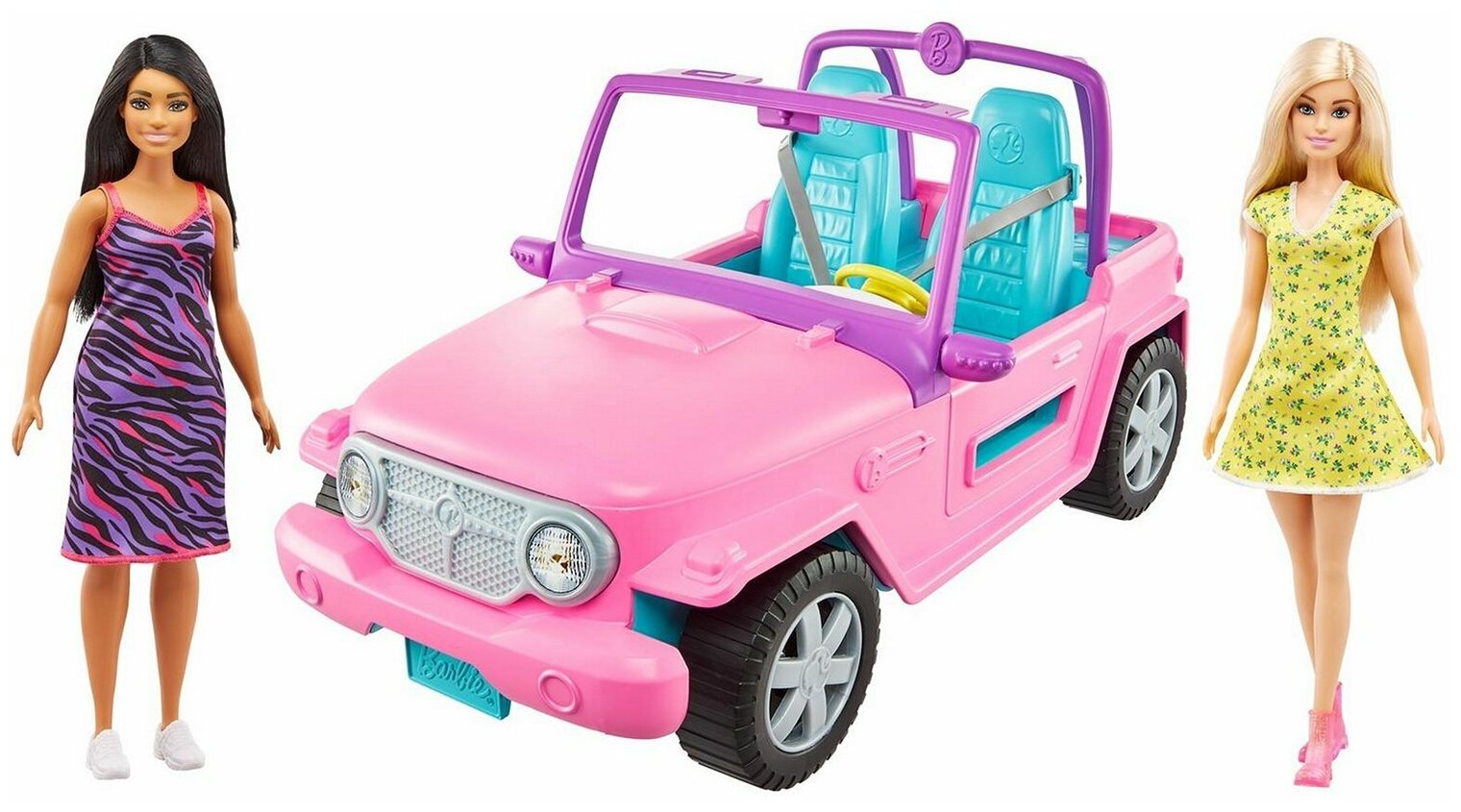 Mattel Barbie Кукла Барби с подругой на машине джипе розовом GVK02