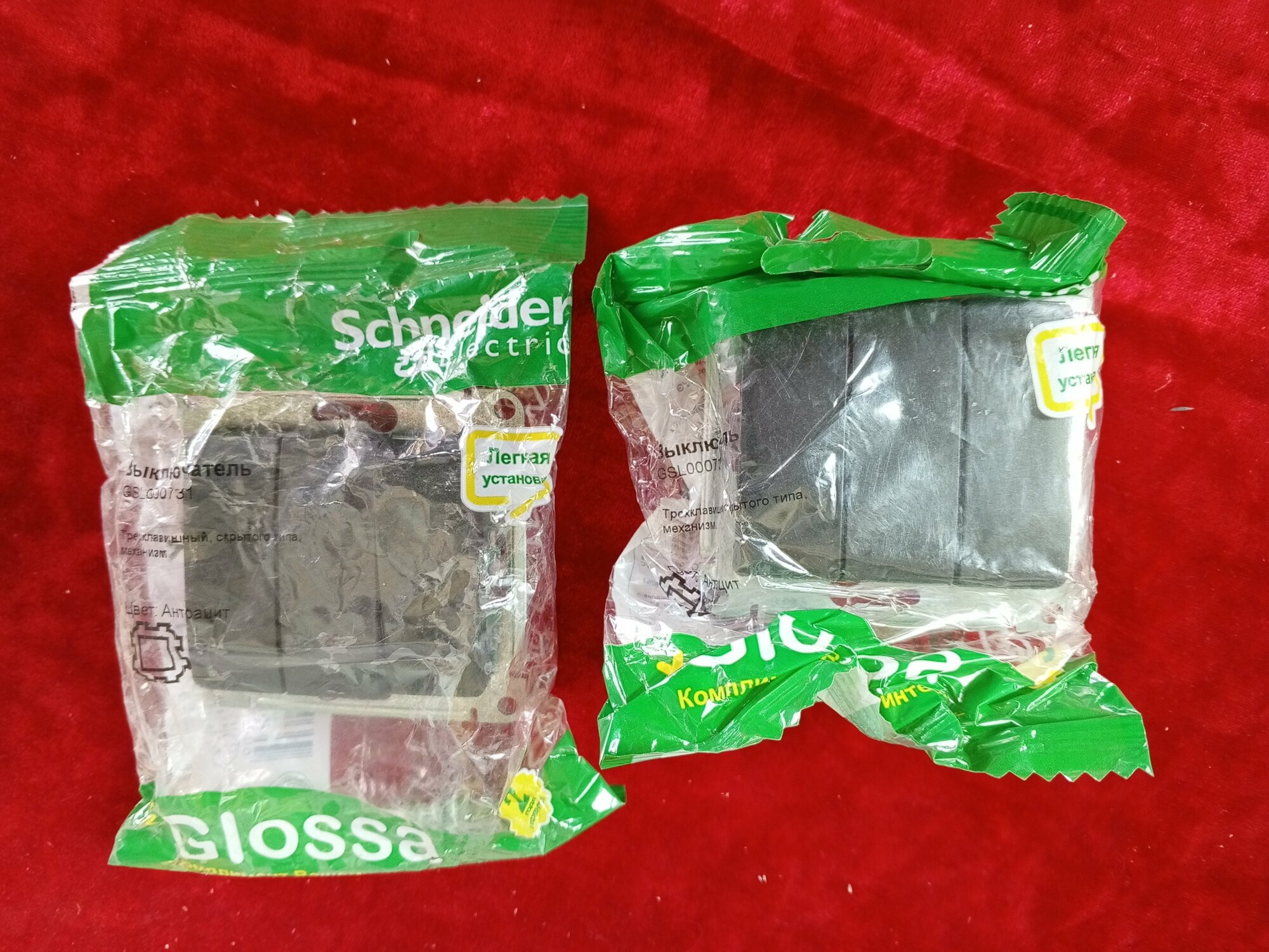 2шт. - GLOSSA Выключатель трехклавишный сх.3 антрацит в рамку / Systeme Electric; арт. GSL000731; оригинал / - комплект 2шт