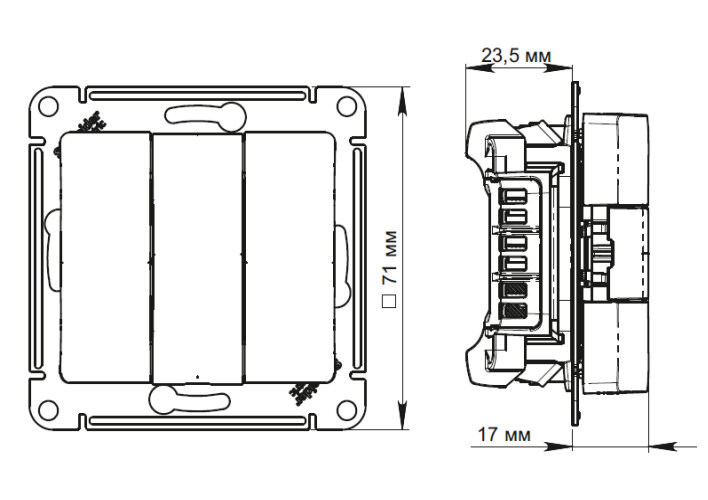 | Схема подключения выключателя | выключатель 3х1-полюсный |