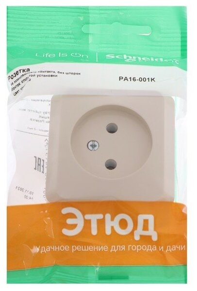 Schneider Electric этюд Крем Розетка 1-местная открытая установка без заземляющих контактов PA16-001K
