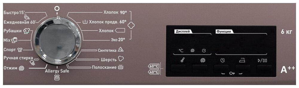 | Программы | стирка смешанных тканей / экономичная программа / стирка спортивной одежды / быстрая стирка / отмена отжима / стирка деликатных тканей / предотвращение сминания / стирка шерсти / предварительная стирка |