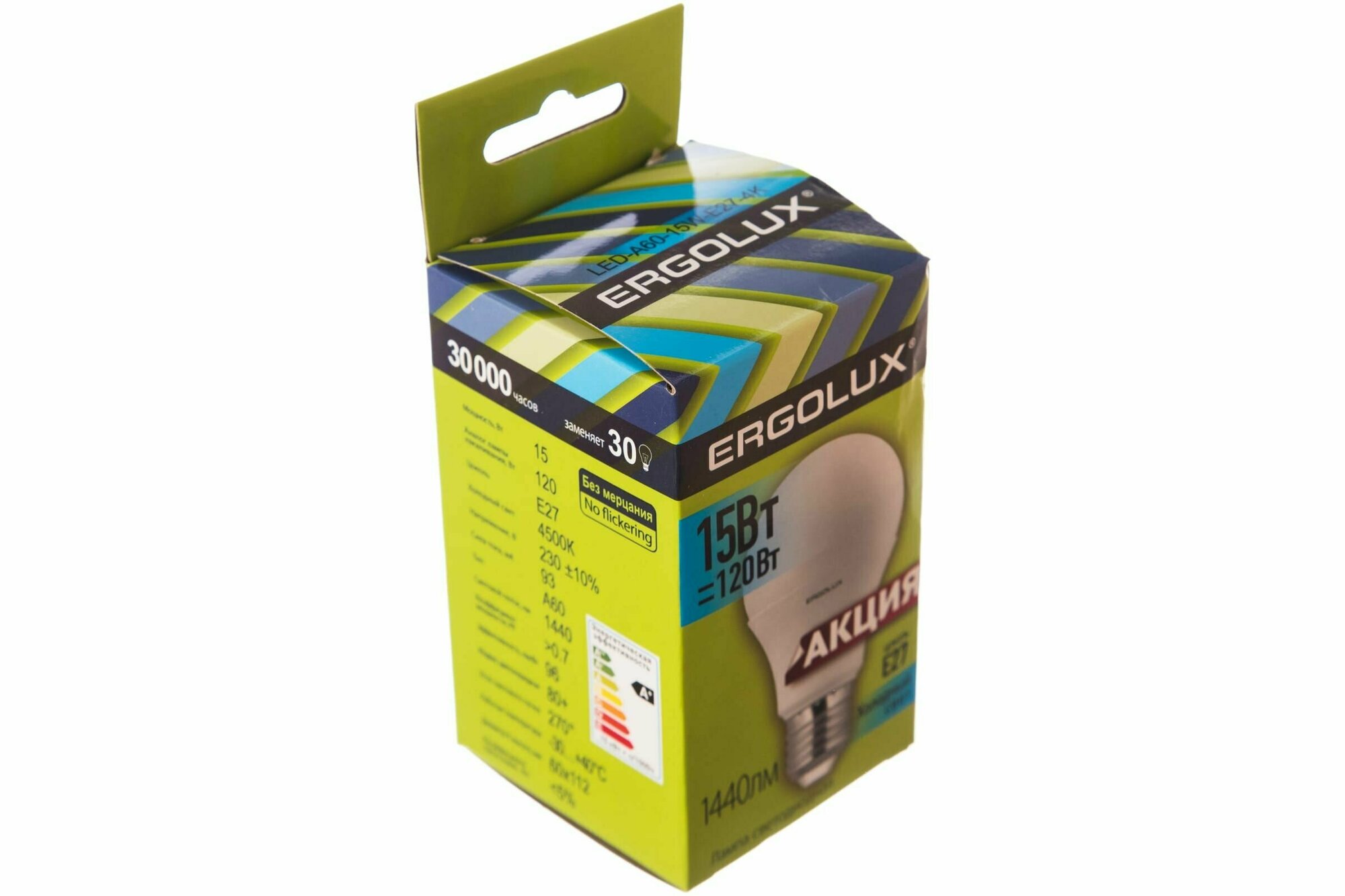 Ergolux (Эл.лампа светодиодная ЛОН 15Вт Е27 4500К 220-240В, промо) ERGOLUX LED-A60-15W-E27-4K (1 шт.)