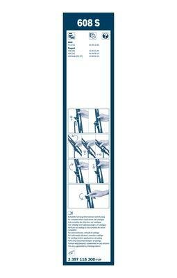 Щетки стеклоочистителя BMW: X5 3.0 d/3.0 i/4.4 i/4.6 is/4.8 is 00- CITROEN: C-CROSSER 2.2 HDi 07- MITSUBISHI: OUTLANDER 2.0 DI-D 06- PEUGEOT: 4007, 3397118308 BOSCH 3 397 118 308