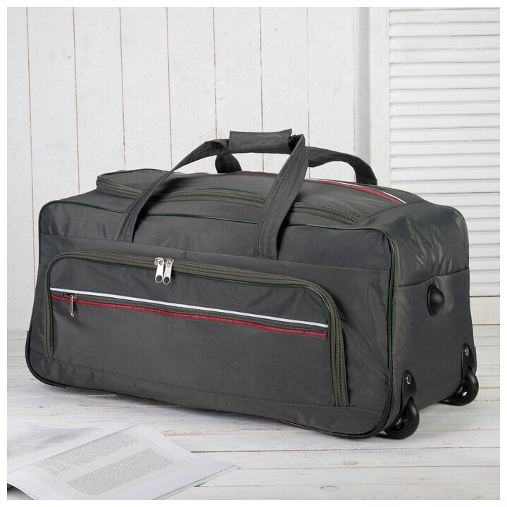 Ниже Вы можете прочитать отзывы на Сумка дорожная на колёсах, отдел на молнии, 3 наружных кармана, цвет хаки с полосками, ознакомится с подробными характеристиками, посмотреть интересные обзоры и фотографии на Сумка дорожная на колёсах, отдел на молнии, 3 наружных кармана, цвет хаки с полосками.