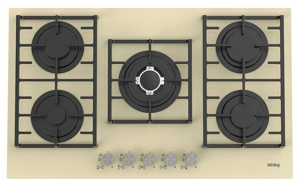 Купить Варочная панель Korting из закаленного стекла, ширина 90 см, 5 высокоэффективных конфорок, сверхмощная конфорка WOK 3,8 кВт, автоматический электроподжиг, газ-контроль каждой конфорки, передние металлические переключатели, чугунные решетки для посуды, в к