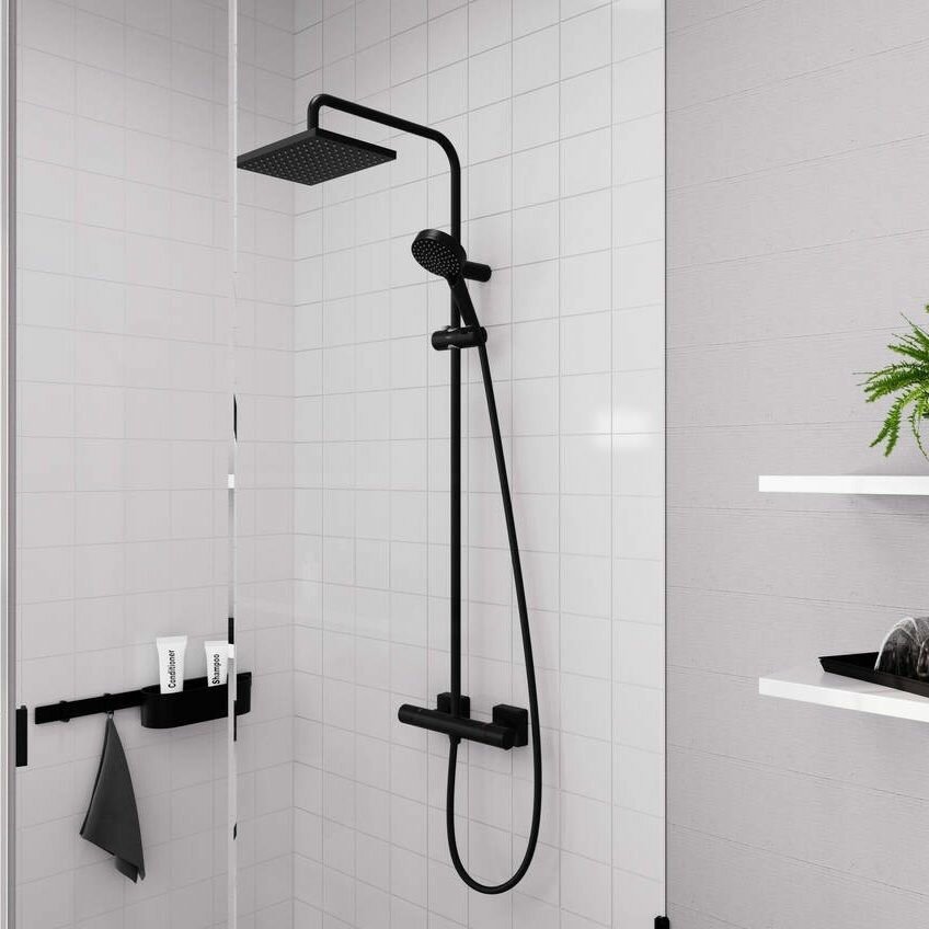 Купить Душевая система Showerpipe 230 1jet с термостатом Hansgrohe Vernis Shape 26286670 черный