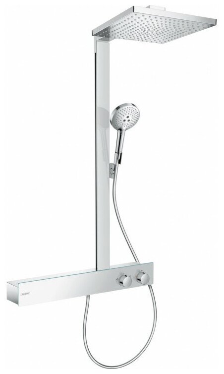 Душевая система без излива Hansgrohe Raindance E, арт. 27363000, 1 режим, 30 см, square, термостат, верхний душ, с лейкой, смеситель 62 см