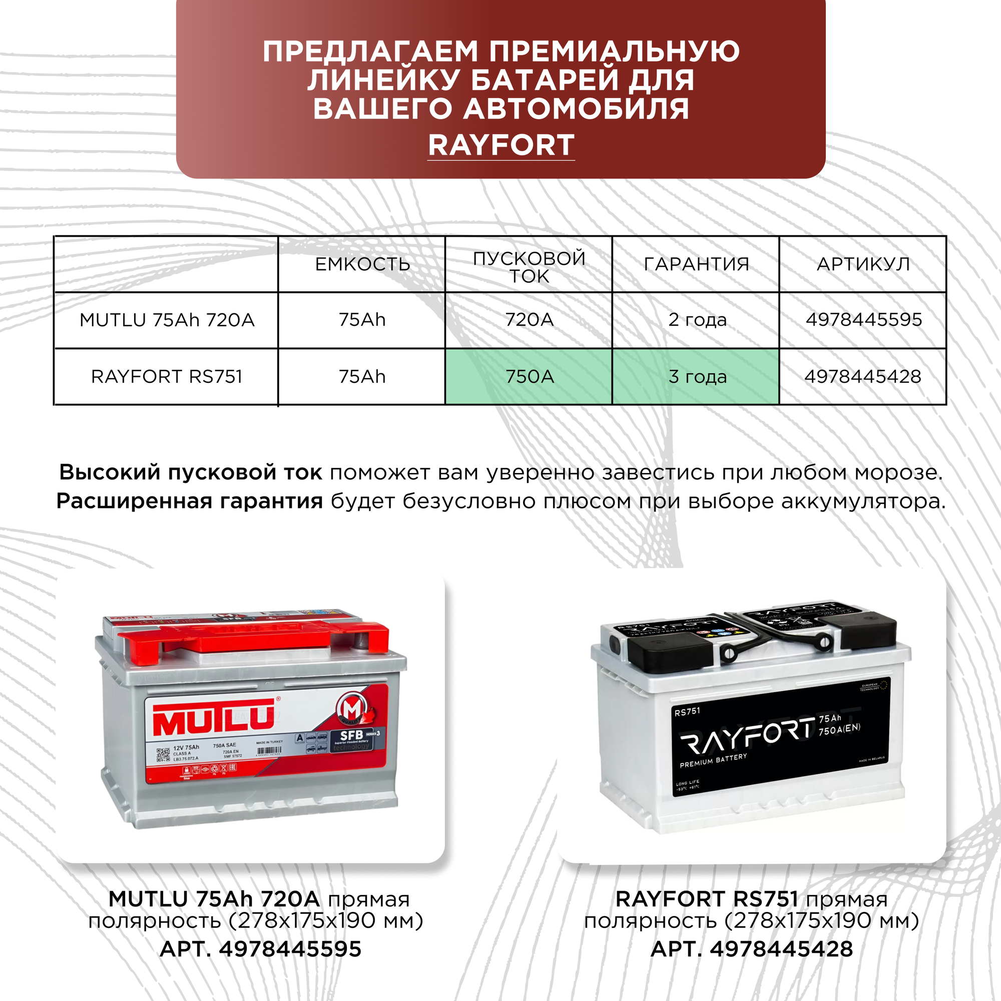 СохранитьАккумулятор автомобильный Mutlu 75 А/ч 720 А прям. пол. 57513 Росс. авто (278x175x190) L3.75.072.B интересное: