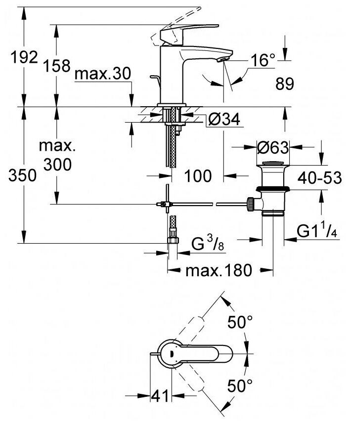 Смеситель для раковины Grohe Eurostyle Cosmopolitan, сливной гарнитур 23037002