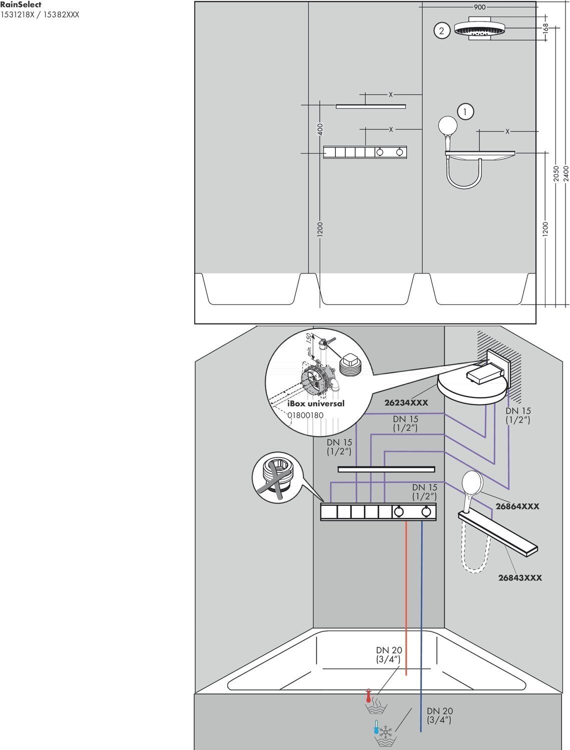 RainSelect Термостат для душа, скрытого монтажа, с 2 кнопками (15355400)