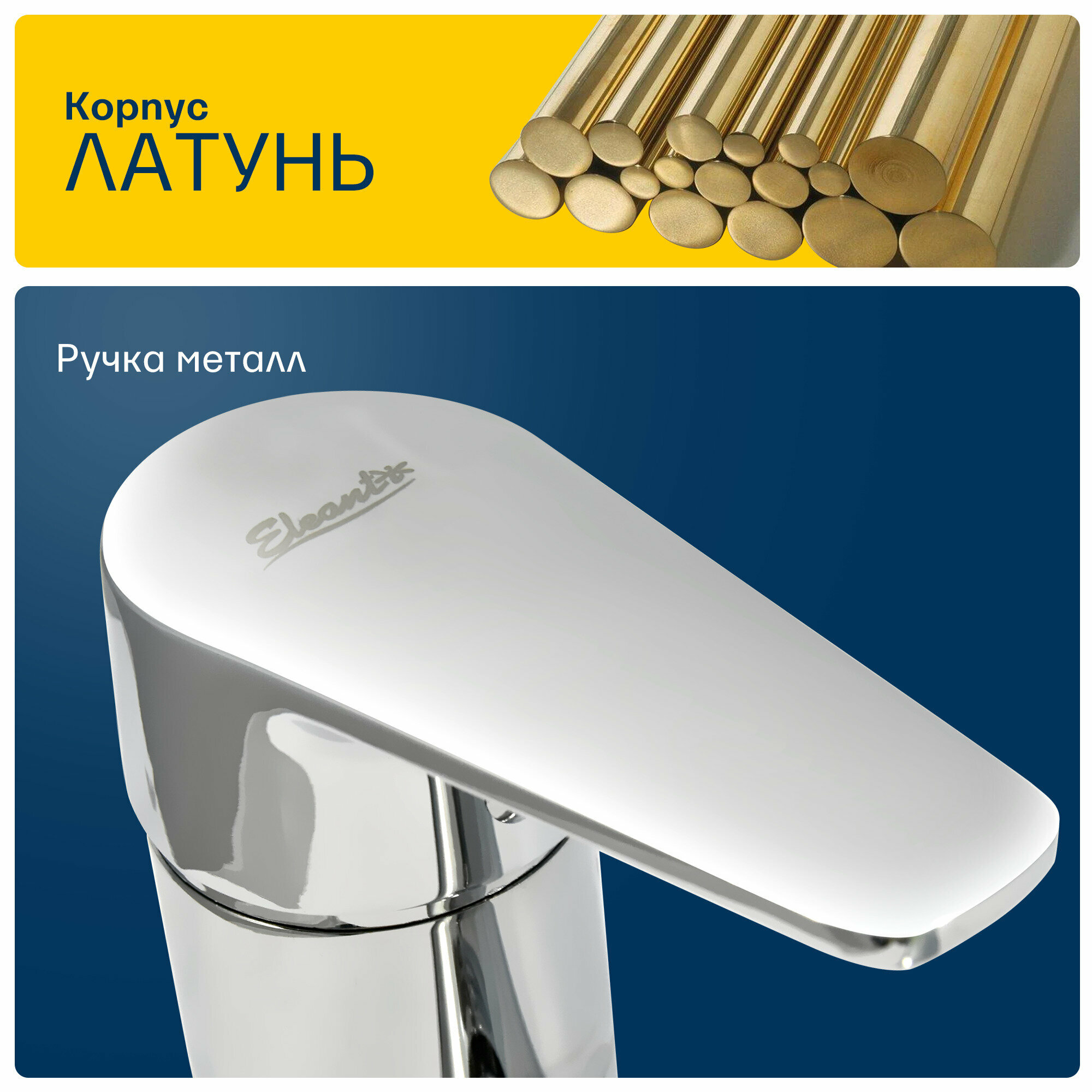 Смеситель для умывальника и раковины рычажный с усиленным латунным корпусом, литой поворотный излив, хром, Элеанти / Eleanti, Арт.: 0402.930