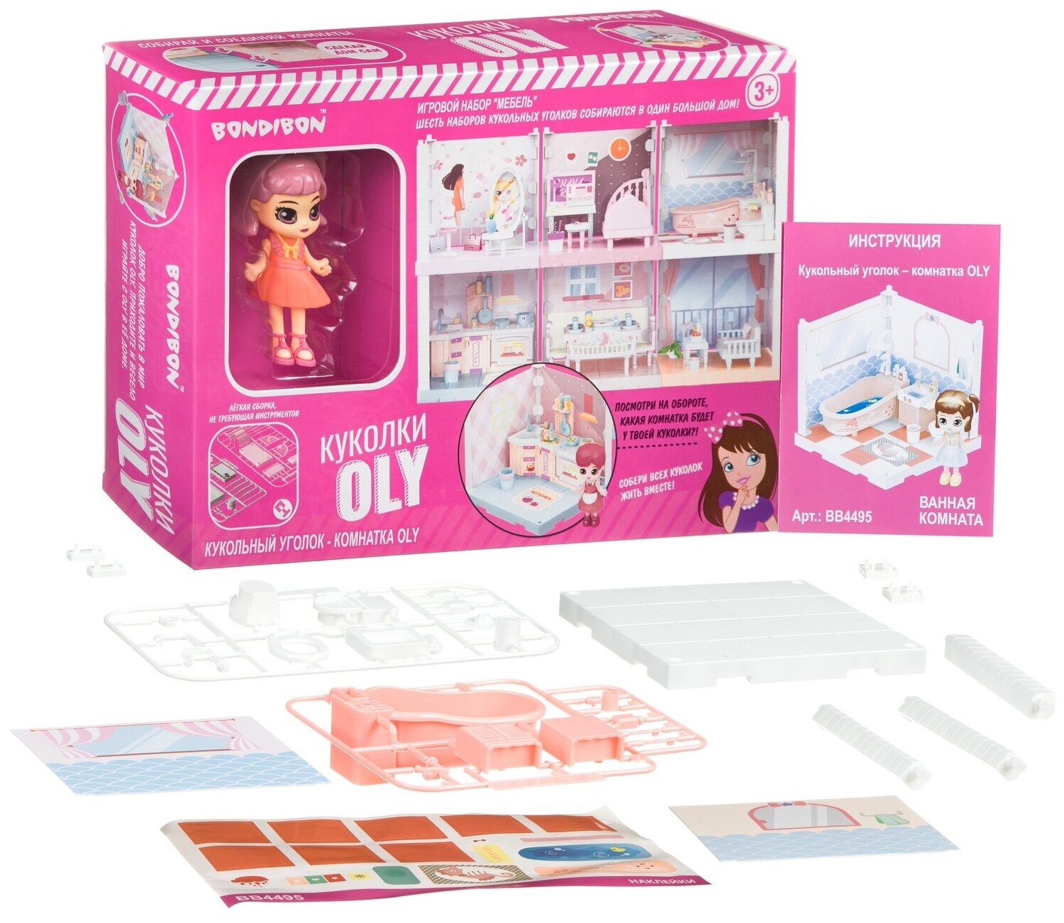 Игровой набор «Мебель» Bondibon, Кукольный уголок (Ванная комната 13,5х13,5х13,5 см) и куколка Oly ВВ4495