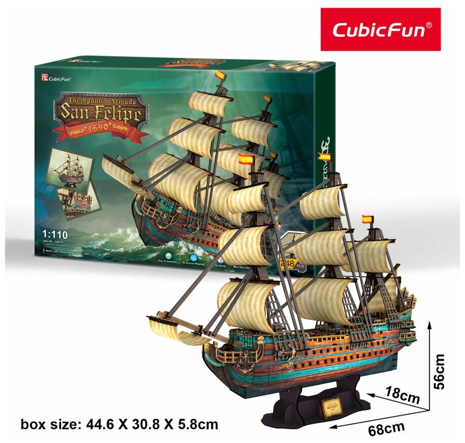 3D-пазл CubicFun "Корабль San Felipe", 248 деталей