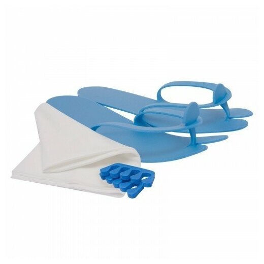 | Дополнительная информация | одноразовый комплект для проведения процедуры педикюра; включает в себя: салфетки 20*30 - 2 шт; разделители для пальцев голубого цвета - 1 пара; тапки-вьетнамки голубого цвета (толщина подошвы 3 мм) - 1 пара. |