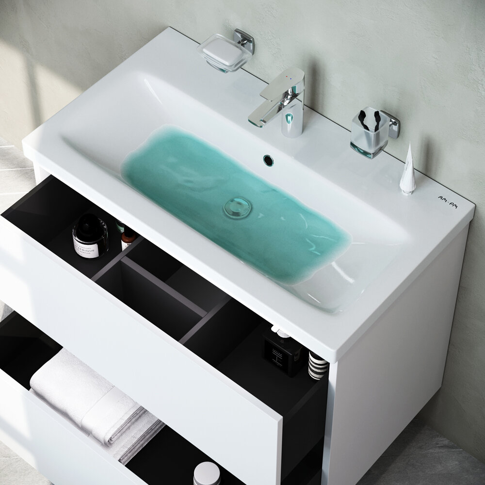 AM.PM Тумба с раковиной AM.PM Gem 75 белый глянец, с 2 ящиками со смесителем
