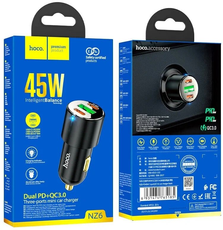 Купить АЗУ HOCO NZ6 PD45W 3-port (2C1A) car charger (черный)