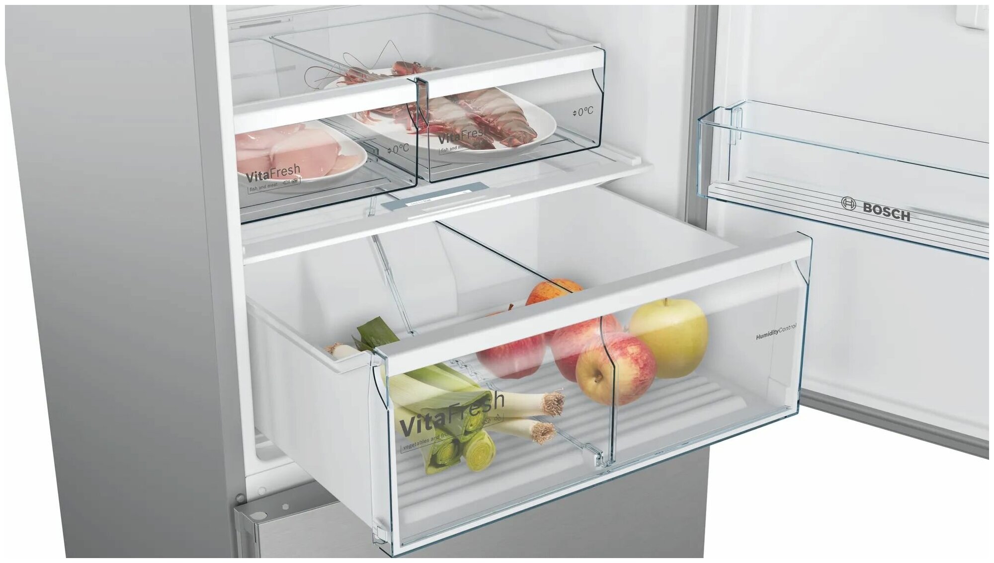 Отдельностоящий холодильник с морозильной камерой снизу Bosch KGN76VI30M Series 4, 1860x750x800, 422/156 л, 42 дБ, NoFrost, Vita Fresh, MultiAirFlow