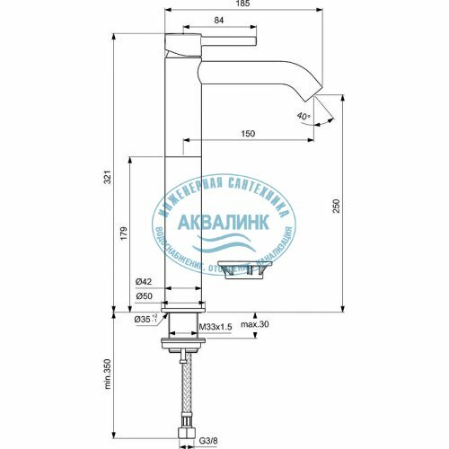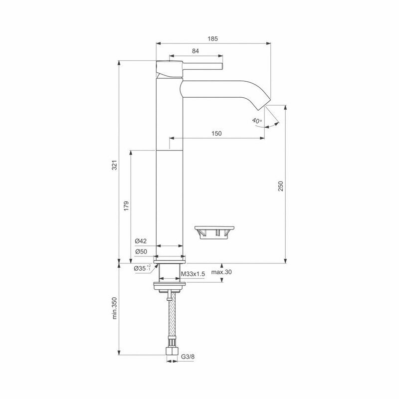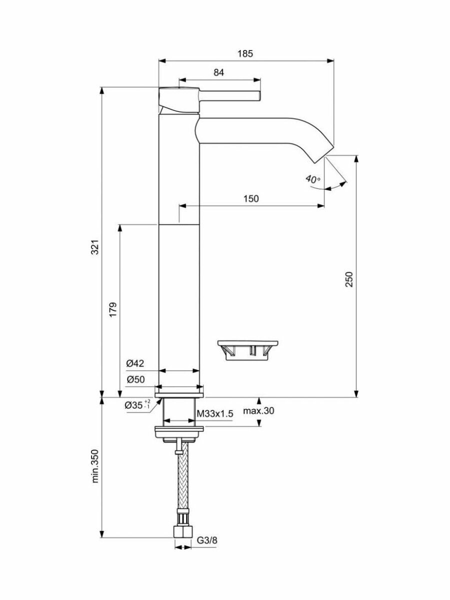 Смеситель для умывальника Ideal Standard CERALINE однозахватный, высота 250мм, черный мат. BC269XG