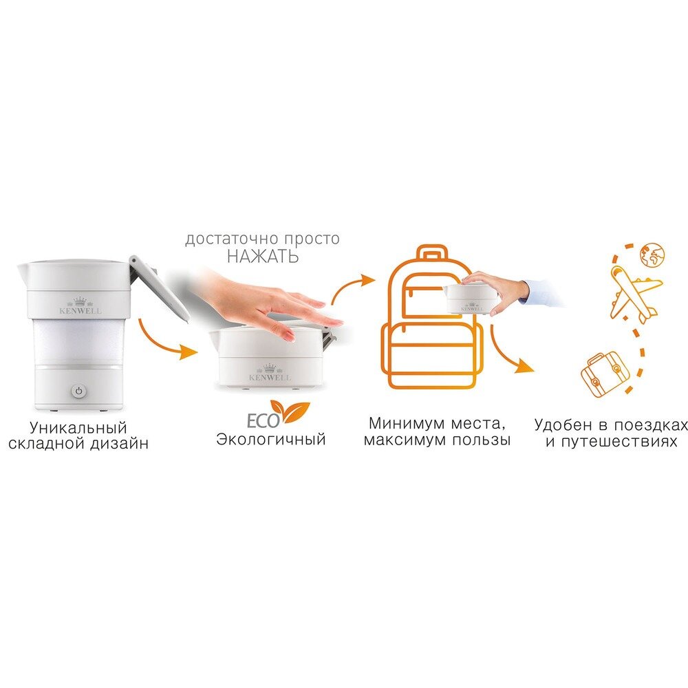 Чайник электрический KENWELL H-120 складной 0.6л,белый.