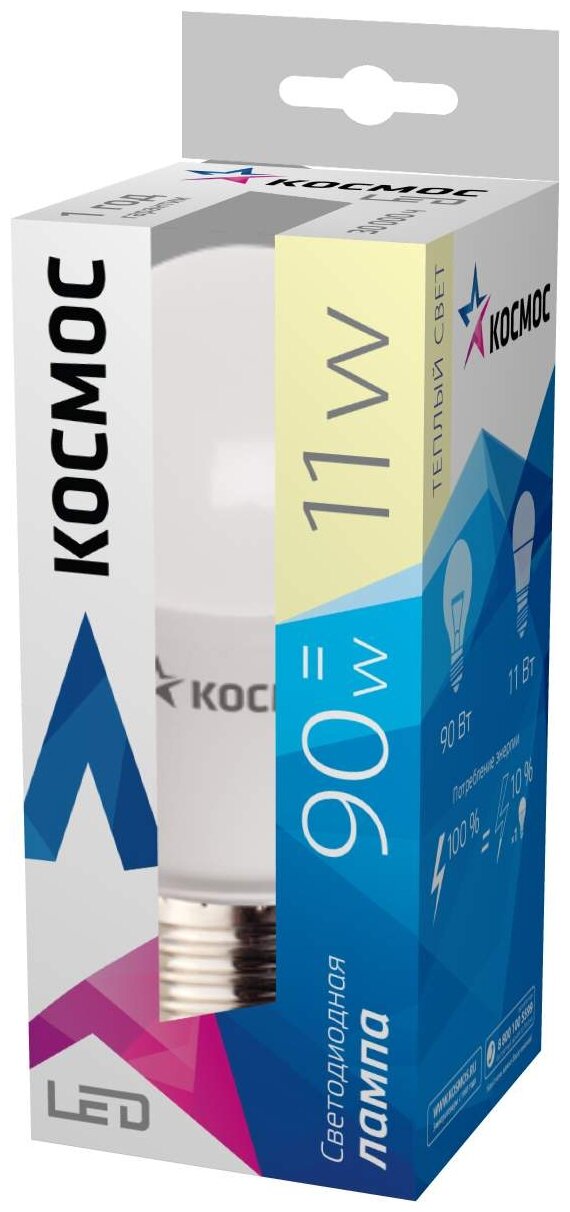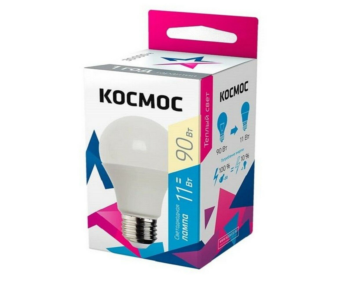 Лампочки светодиодные Космос А60 11Вт Е27 (аналог 90Вт) Теплый свет, 1 шт.