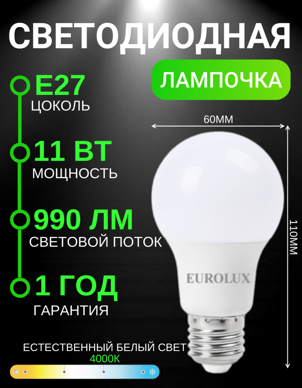 Светодиодная лампа Eurolux LL-E-A60-11W-230-4K-E27