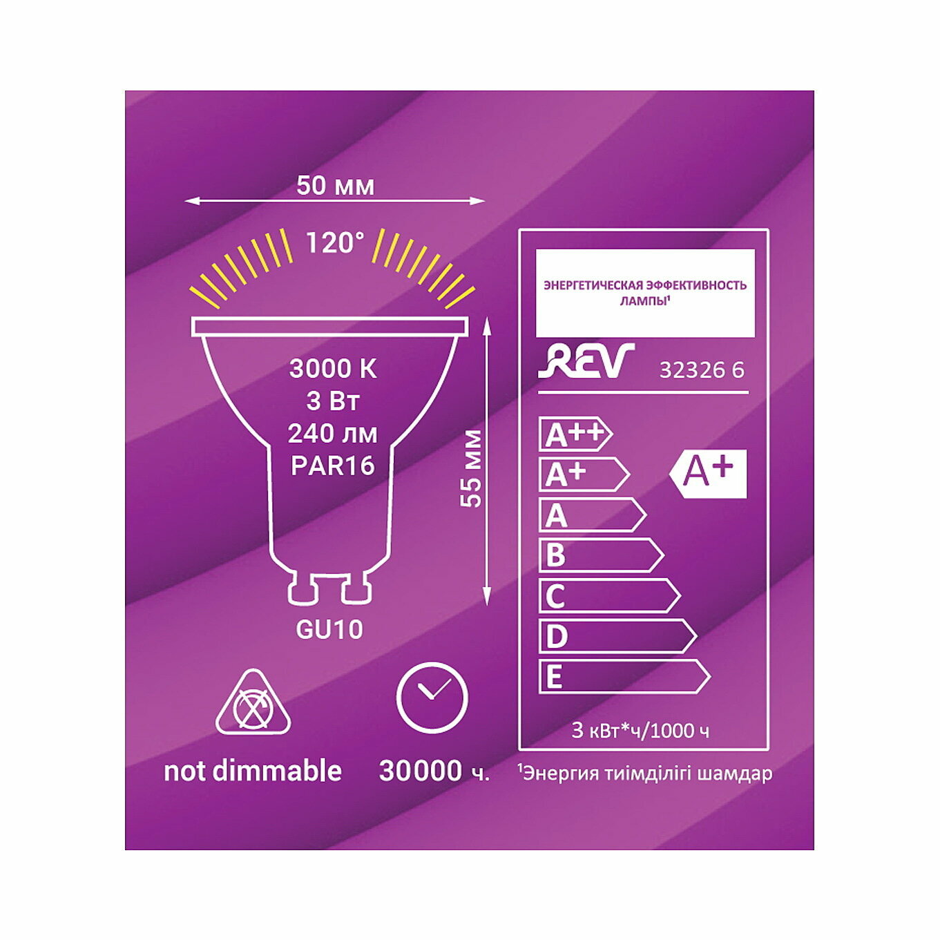 Светодиодная лампа REV PAR16 GU10 3W, 3000K, теплый свет 32326 6 интересное: