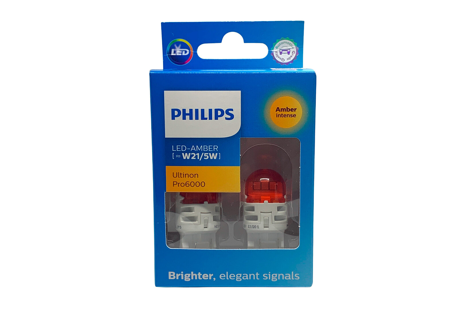 Лампа светодиодная Philips Ultinon Pro6000 WY21/5W (W3x16q, T20), 12В, 2.5/0.5 (соответствует 21/5Вт), оранжевая, комплект 2 шт, арт. 11066AU60X2