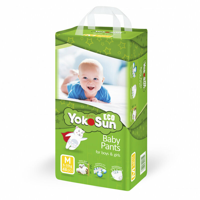 Купить Одноразовые детские подгузники-трусики YokoSun Eco размер М (6-10 кг), 48 шт.