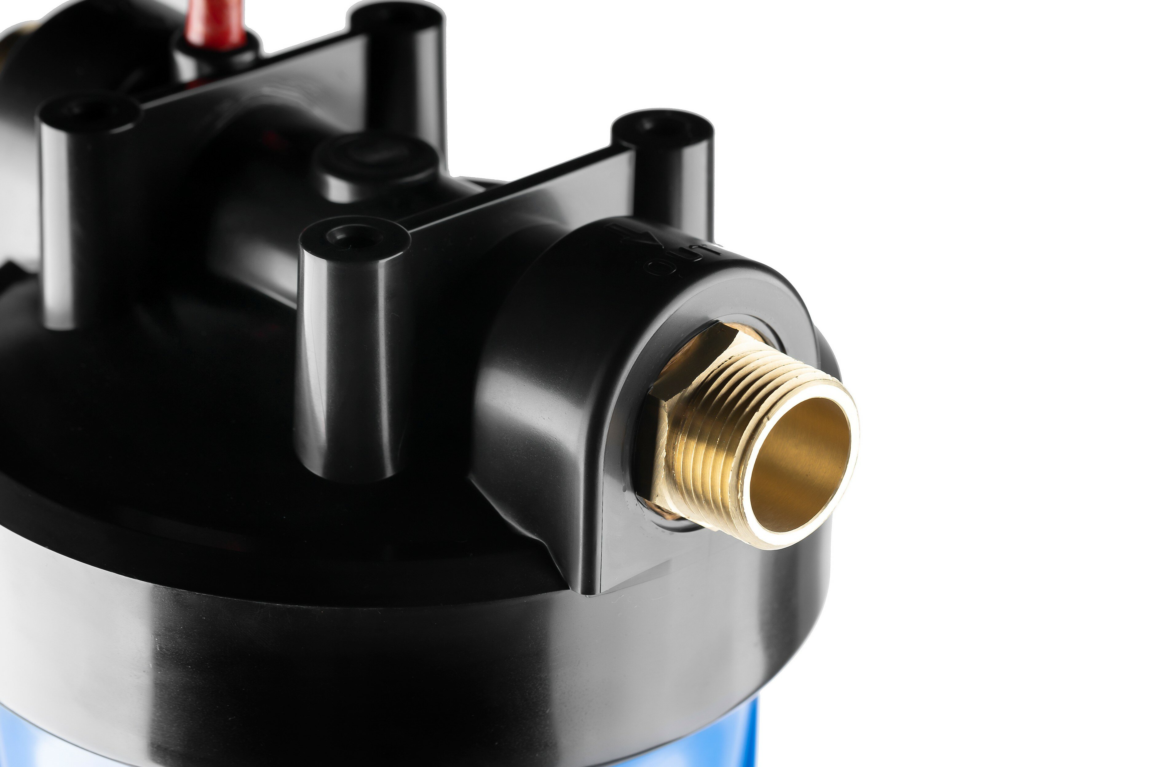 | Минусы: | Латунные фитинги(идут в комплекте написано), вкрученные в корпус, не докручены и промазаны каким то подобием солидола. Нужно выкручивать и обматывать фум лентой.