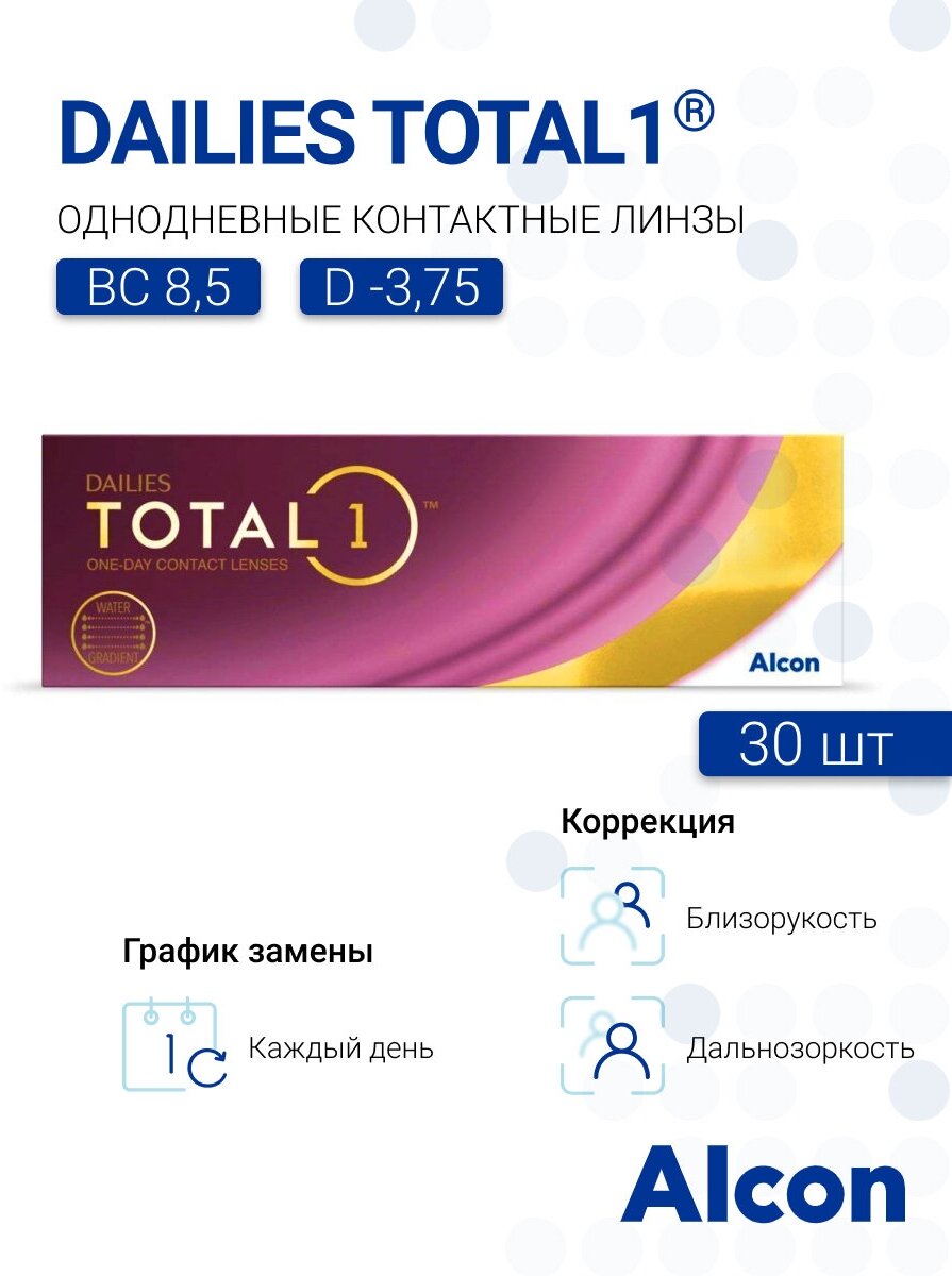 Контактные линзы Dailies (Alcon) Total1, 30 шт., R 8,5, D +3,75