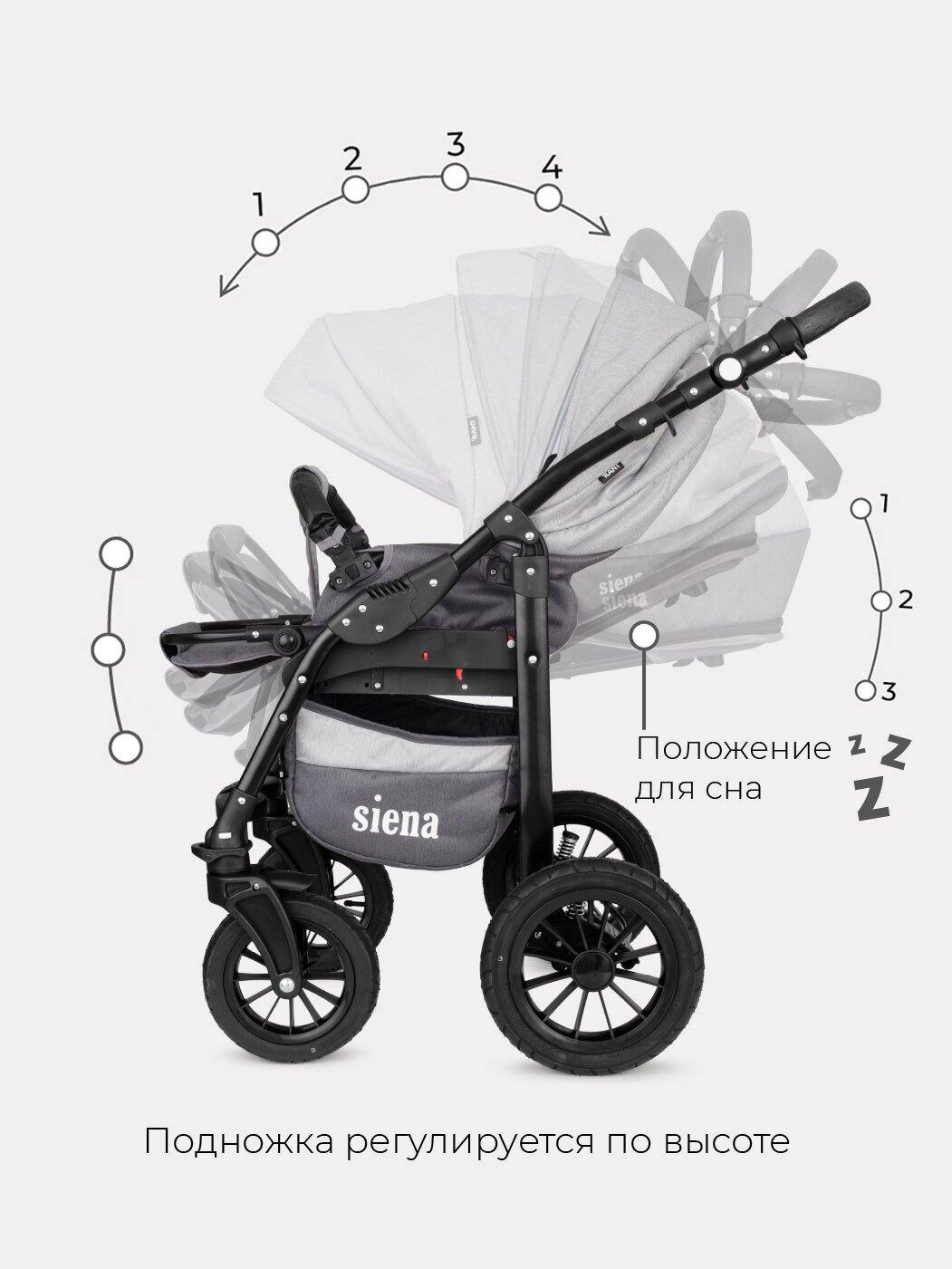 Коляска детская универсальная Rant Siena New 2 в 1, 01 графит-серый