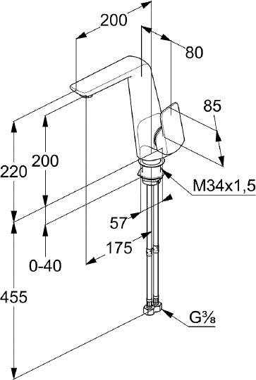Смеситель для раковины Kludi Ameo 200, гладкий корпус, хром 410240575